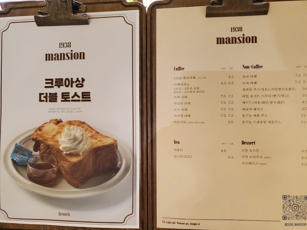 Welcome to 1938 Mansion, a charming cafe nestled in the heart of Jeonju, South Korea, at 78 Eojin-gil, Wansan-gu. This delightful spot offers an enchanting atmosphere reminiscent of a Parisian cafe from the 1930s, where the decor and warm ambiance invite guests to sit back, relax, and indulge in some of the finest breakfast and brunch offerings in the area.
